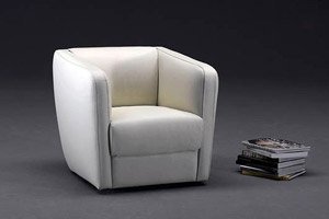 Modern and design arnchair with folding back and tourneround base.