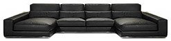 Large and impressive corner suite fully in Italian leather. Large and comfortable chaise long and adjustable backs are the main features of this model. Aramis stands on a stylish basement in stainless steel. Available in different sizes on demand.