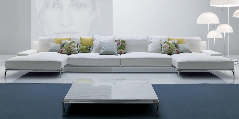 This elegant modern sofa designed in clean straight lines embodies the pure idea of Beauty. Its principal feature is a large and stylish stainless steel base. An extraordinary comfort of this sofa is enhanced by the backrests adjustable in 6 steps. Great to look at, great to sit on.