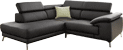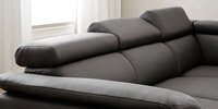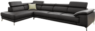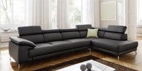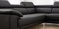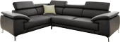 A nice sofa suite for a modern living room. Adjustable backrests and soft arm cushions filled with foam rubber and polyurethane provide comfort and the stylized stainless steel legs complement the beauty of this corner sofa. Also available in custom measurements