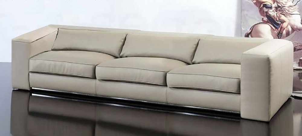 Unique Italian leather sofa, with rustproof metal decoration on arm. It is very popular because of its clear and modest décor, cozy seat and backrest with pillows. Folding backrests and big spongy arms are peculiar features of this leather sofa. You are sure to like the low price of this sofa. Don’t skip this opportunity. The sofa is also available in any custom size.