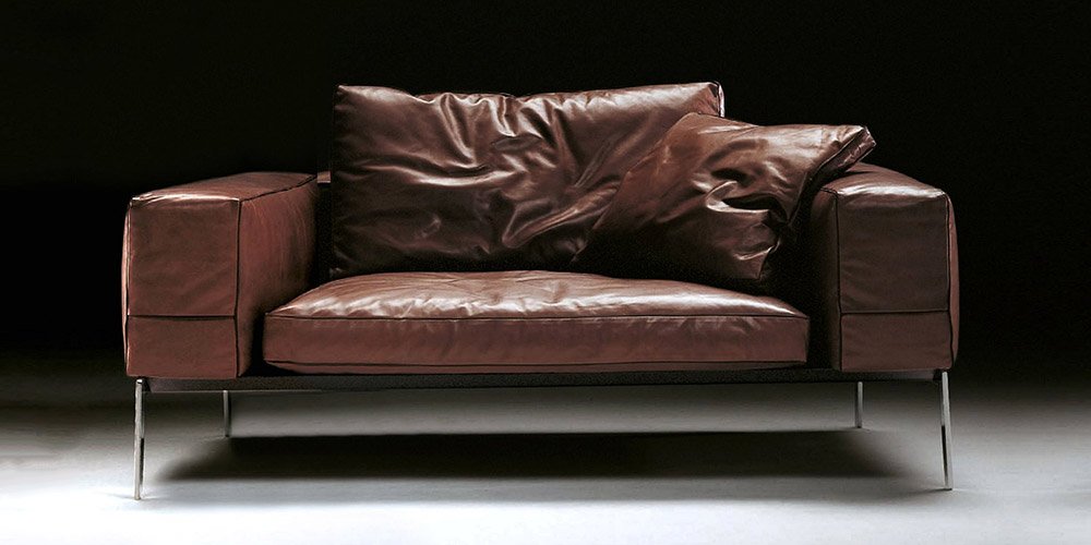 A leather sofa in simple but original design. Two arms are incrementally adjustable. Modern-looking sled-shaped feet are made of stainless steel. A headrest is included in the price. This sofa is available in all standard and custom leather types and colors. Anthea with his special design and excellent comfort, will please to all your friends and family.