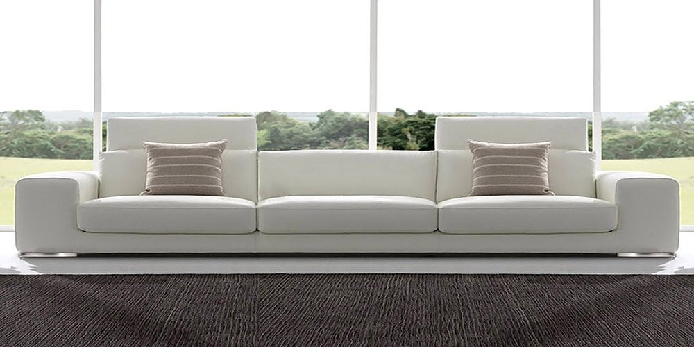 Unique Italian leather sofa, with rustproof metal decoration on arm. It is very popular because of its clear and modest décor, cozy seat and backrest with pillows. Folding backrests and big spongy arms are peculiar features of this leather sofa. You are sure to like the low price of this sofa. Don’t skip this opportunity. The sofa is also available in any custom size.