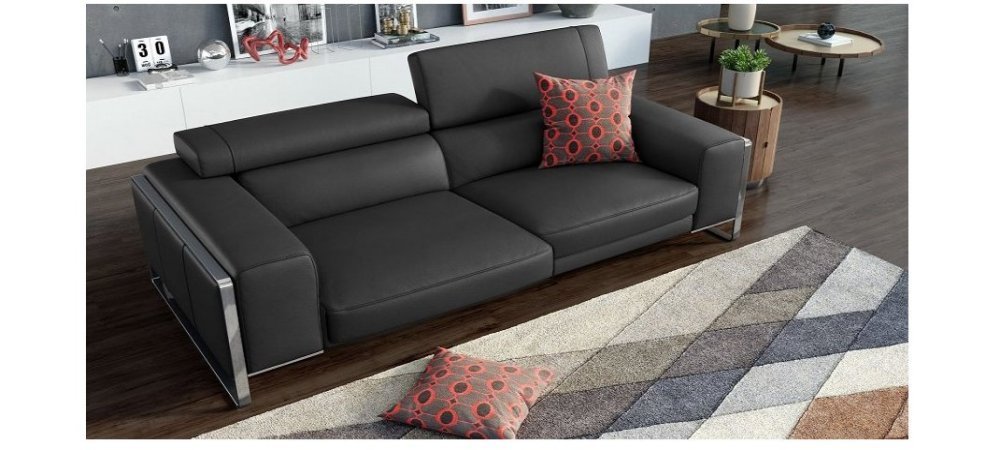 A leather sofa in simple but original design. Two arms are incrementally adjustable. Modern-looking sled-shaped feet are made of stainless steel. A headrest is included in the price. This sofa is available in all standard and custom leather types and colors. Anthea with his special design and excellent comfort, will please to all your friends and family.